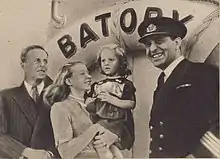 ![]() یادویگا آندژیفسکا بههمراه دختر کوچکش در کنار ریشارد اوردینسکی (کارگردان) و یان چیکلینسکی (افسر نیروی دریایی) | |
