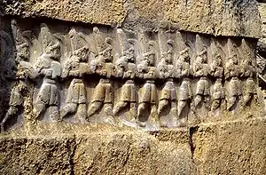 برج B با دوازده خدای جهان زیرین نقش برجسته است.