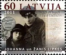 ![]() تمبر یادبودی برای یانیس و همسرش یوهانا لیپکه | |