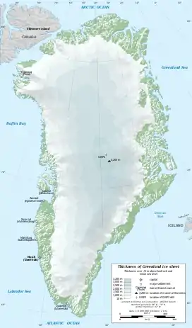 - مشارکتکنندگان ویکیپدیا. «Greenland ice sheet». در دانشنامهٔ ویکیپدیای انگلیسی، بازبینیشده در ۱۳ نوامبر ۲۰۱۵.