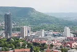 شنیدن)) شهری در ایالت تورینگن آلمان است. این شهر به خطوط راهآهن آلمان متصل است. ینا در شرق این ایالت واقع شدهاست. ینا یکی از شهر-دانشگاههای آلمان[1] و دومین شهر بزرگ ایالت تورینگن است. این شهر به همراه شهرهای ارفورت و وایمار، منطقه شهرستانی ایالت تورینگن با تقریبا ۵۰۰۰۰۰۰ ساکن را تشکیل میدهد؛ این در حالی است که جمعیت خود شهر نزدیک به ۱۱۰۰۰۰ میباشد. ینا مرکز آموزش و پژوهش است؛ دانشگاه فریدریش شیلر در سال ۱۵۵۸ بنیاد گذاشته شده و در سال ۲۰۱۷، ۱۸۰۰۰ دانشجو داشت[2]. گفتنی است که در همان سال، آموزش عالی ارنست آبه ینا (Ernst-Abbe-Fachhochschule)، تعداد ۵۰۰۰ دانشجو را دربرداشته است. افزون بر این، مؤسسات و پژوهشکدههای فروانی در ینا وجود دارد که آن به قطب پژوهش و دانش تبدیل ساخته است.