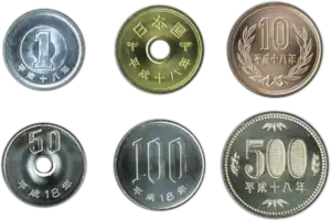 | سکهها | ¥۱، ¥۵، ¥۱۰، ¥۵۰، ¥۱۰۰، ¥۵۰۰ |