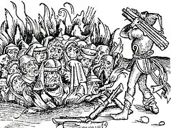 هولوکاست به کشتار دستهجمعی و نسلکشی نزدیک به شش میلیون نفر یهودی و پنج میلیون نفر دیگر بر پایه نژاد، مذهب، ملیت و عقیده در طی جنگ جهانی دوم به دست آلمان نازی و از ۱۹۴۱ تا انتهای ۱۹۴۵ در اردوگاههای مرگ آلمان نازی، گفته میشود.[13]
