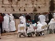 نمای دیوار ندبه در شهر اورشلیم - حرم ابراهیمی یا غار پدران:در اورشلیم مکانی که آدم، حوا، ابراهیم، اسحق، لیاه، یعقوب، ساره و ربکا در آن بخاک سپارده شدهاند.