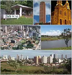 ![]() Top left:Mata do Ipe Ecological Park, Top middle:Manhattan Flat Service Foundation in Frei Fugenio Square, Top right:Sao Domingos Church, Middle left:Areal View in Centro area, Middle right:Acacias Park (Parque das Acacias], Bottom:Panorama view of Downtown Uberaba, from Jacaranda Zoological Park in Joao Luiz Alvarenza Street | |