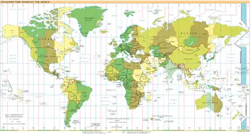 گرینویچ-۱۲: آبی (دسامبر)، نارنجی (ژوئن)، زرد (در تمام طول سال)، آبی روشن - مناطق دریایی
