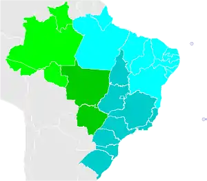 - مناطق فدرال برزیل, اسپیریتو سانتو, گوییاس, میناس گرایس, پارانا (برزیل), ریو دو ژانیرو, ریو گرانده دو سول, سانتا کاتارینا, ایالت سائوپائولو, باهیا