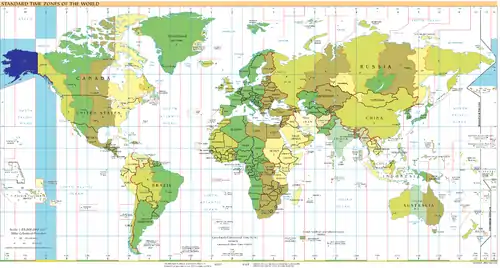 گرینویچ-۹: آبی (دسامبر)، نارنجی (ژوئن)، زرد (در تمام طول سال)، آبی روشن - مناطق دریایی