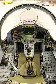 خلبان هواپیما را به وسیله استیک مرکزی و تراتل سمت چپ به پرواز درمیآورد. خروج اضطراری توسط صندلی مارتین بیکر امکا. ۱۶آ انجامپذیر است.
