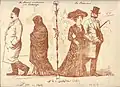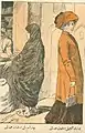 کاریکاتوری از نشریه ملا ناصرالدین یک زن چادی و یک زن بیحجاب را نشان میدهد
