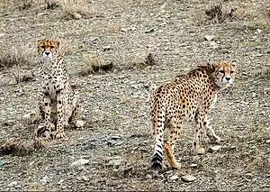 - Charruau, P.; Fernandes, C.; Orozco-Terwengel, P.; Peters, J.; Hunter, L.; Ziaie, H.; Jourabchian, A.; Jowkar, H.; Schaller, G. (2011). "Phylogeography, genetic structure and population divergence time of cheetahs in Africa and Asia: evidence for long-term geographic isolates". Molecular Ecology. 20 (4): 706–724. doi:10.1111/j.1365-294X.2010.04986.x. ISSN 1365-294X. PMC 3531615. PMID 21214655.