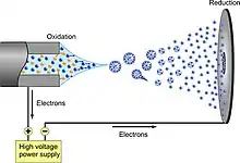 یونیزاسیون الکتروافشانه (ESI) روشی است که در طیفسنجی جرمی برای تولید یونها با استفاده از یک الکتروافشانه مورد استفاده قرار میگیرد که در آن یک ولتاژ بالا برای ایجاد یک آئروسل به یک مایع اعمال میشود. این ماده به ویژه در تولید یون از ماکرومولکولها بسیار مفید است زیرا در هنگام یونیزاسیون، چربی این مولکولها به قطعه غلبه میکند. یونیزاسیون الکتروافشانه با سایر فرایندهای یونیزاسیون (مانند دفع جذب / یونیزاسیون لیزر به کمک ماتریس) متفاوت است زیرا ممکن است یونهای چند بار شارژ تولید کند، بهطور مؤثر دامنه جرم آنالایزر را برای پذیرش دستورها kDa-MDa از میزان مشاهده شده در پروتئینها و قطعات پلی پپتیدی مرتبط با آنها.[1][2]