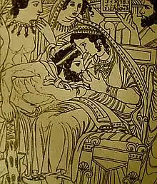 تصویری از یک نقاشی در آینهٔ اتروسکی، که در آن یونی در حال شیردادن به هرکله بالغ است، قبل از آنکه به جاودانگی دست یابد.