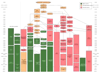 ![]() سیر تکامل سیستمهای یونیکس و شبه یونیکس | |