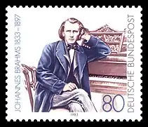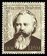 - ضرب سکه یادبود به ارزش ۵ مارک بهنام یوهانس برامس، توسط جمهوری دموکراتیک آلمان (۱۹۷۲).[105]