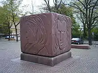 مکعب از جنس گرانیت با چهار پرتره از برامس، در شهر هامبورگ، ساختۀ داربوون[persian-alpha 77].