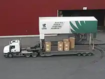 رولهای کاغذ یوپیام در حال انتقال از بندر راوما، فنلاند