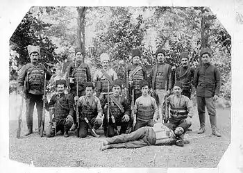 ![]() عدهای از اعضای گروه فوج نجات تبریز. سال ۱۹۰۹ میلادی. | |