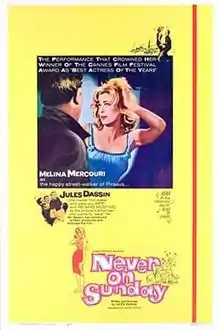 یکشنبهها هرگز (به انگلیسی: Never on Sunday) فیلمی ۹۱ دقیقهای در سبک کمدی رمانتیک به کارگردانی جولز دسین با بازی ملینا مرکوری است.[3]