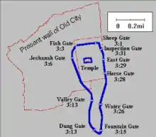 - در اورشلیم جدید ۱۲ دروازه که شامل ۱۲ مروارید است، با ۱۲ فرشته در دروازهها و روی دروازهها نام ۱۲ سبط اسرائیل نوشته شدهاست (چهار عدد در ضلع شمالی، چهار عدد در ضلع جنوبی، دو عدد در ضلع غربی، دو عدد در ضلع شرقی)