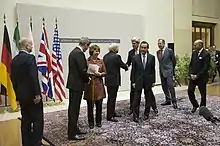 - هوبهفکر، منا (۳ آذر ۱۳۹۲). «نشست، عکس یادگاری و قرائت بیانیه مشترک ایران و ۱+۵ در مقر سازمان ملل». دریافتشده در ۱۵ اسفند ۱۳۹۲.