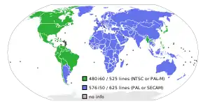 رزولوشن تصویر استاندارد تلویزیونی در نقشهٔ جهانی؛ کشورهایی که از ۴۸۰آی استفاده میکنند با رنگ سبز مشخص شدهاند.
