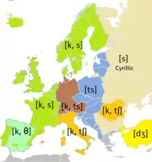 ارزش(های) آوایی معمول حرف c در دبیرههای زبانهای اروپایی