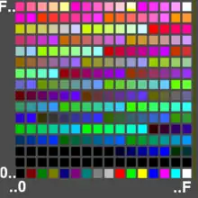 گیفها مبتنی بر رنگ و تنوع رنگی هستند، بدینمعنی که رنگهای بهکاررفته در یک تصویر (frame) در یک فایل مقادیر RGB (قرمز، سبز، آبی) خود را در یک جدول رنگ که تا ۲۵۶ داده را میتواند نگهدارد به صورت ذخیره شده دارند، و دادههای تصویر با اندیس (۰ الی ۲۵۵) به مقادیر موردنظر برای رنگ خود در جدول رنگ اشاره میکنند. با آن که تنوع ترکیبات رنگ موجود برای گیفها بسیار زیاد است، ولی حداکثر تعداد رنگهایی که میتوانند به صورت همزمان در یک تصویر (frame) به نمایش درآیند ۲۵۶ میباشد. این محدودیت در زمان معرفی گیفها معقول و منطقی به نظر میرسید، چراکه در آن زمان تعداد بسیار کمی از افراد بودند که به سختافزاری با امکان نمایش بیش از ۲۵۶ رنگ به صورت همزمان دسترسی داشتند. کارتونها، نقاشیهای خطی، کارهای گرافیکی ساده و عکسهای سیاه و سفید معمولاً نیاز به حداکثر ۲۵۶ رنگ دارند.