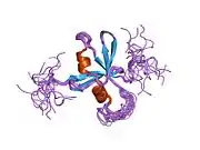 - Janes PW, Lackmann M, Church WB, Sanderson GM, Sutherland RL, Daly RJ (Mar 1997). "Structural determinants of the interaction between the erbB2 receptor and the Src homology 2 domain of Grb7". The Journal of Biological Chemistry. 272 (13): 8490–7. doi:10.1074/jbc.272.13.8490. PMID 9079677.