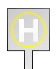 بالگردنشینها معمولاً قسمتی دایرهشکل دارند به ابعاد مشخص میباشد که با حرف H به معنای helicopter نشان داده میشود و محدوده فرود بالگرد را مشخص میکند.