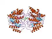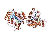 - Vannini A, Volpari C, Filocamo G, et al. (2004). "Crystal structure of a eukaryotic zinc-dependent histone deacetylase, human HDAC8, complexed with a hydroxamic acid inhibitor". Proc. Natl. Acad. Sci. U.S.A. 101 (42): 15064–9. doi:10.1073/pnas.0404603101. PMC 524051. PMID 15477595.