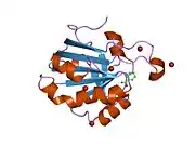 - Evrard C, Capron A, Marchand C, Clippe A, Wattiez R, Soumillion P, Knoops B, Declercq JP (April 2004). "Crystal structure of a dimeric oxidized form of human peroxiredoxin 5". Journal of Molecular Biology. 337 (5): 1079–90. doi:10.1016/j.jmb.2004.02.017. PMID 15046979.