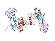- Baniwal SK, Khalid O, Sir D, Buchanan G, Coetzee GA, Frenkel B (August 2009). "Repression of Runx2 by androgen receptor (AR) in osteoblasts and prostate cancer cells: AR binds Runx2 and abrogates its recruitment to DNA". Molecular Endocrinology. 23 (8): 1203–14. doi:10.1210/me.2008-0470. PMC 2718746. PMID 19389811.